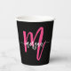 Hot Pink Black Modern Script Name Girl Monogram Pappbecher