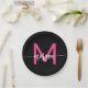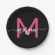 Hot Pink Black Modern Script Name Girl Monogram Pappteller
