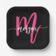 Hot Pink Black Modern Script Name Girl Monogram Pappteller