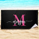 Hot Pink Black Modern Script Name Girl Monogram Strandtuch