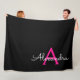 Hot Pink Black Script Name der Girl Monogram Fleecedecke