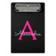 Hot Pink Black Script Name der Girl Monogram Mini Klemmbrett