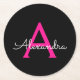 Hot Pink Black Script Name der Girl Monogram Runder Pappuntersetzer