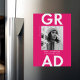 Mit unseren Foto Abschluss Ankündigung Magnetkarten für Ihren Abschluss im Stil! Die trendigen Magnetkarten des Abschlusses zeigen das Foto Ihres Absolventen mit "Grad" in fett weißem Schriftzeichen auf einem heißen rosa Hintergrund. Personalisieren Sie die Vorderseite des Hot-Rosa-Abschluss-Magneten, indem Sie den Namen des Absolventen, den Schulnamen und das Jahr des Abschlusses hinzufügen.