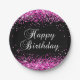 Hot Pink Glitzer Black Happy Birthday Pappteller