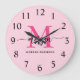 Hot Pink Modern Script Girl Monogram Name Große Wanduhr