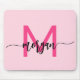 Hot Pink Modern Script Girl Monogram Name Mousepad