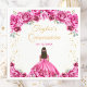 Diese elegante und glamouröse Quinceañera Geburtstagsserviette besticht durch eine wunderschöne Prinzessin mit dunklem Haar in einem heißen rosa Ballkleid. Der Text kombiniert handgeschriebene Skripte mit modernen serifenlosen Schriftart für ein elegantes und raffiniertes Aussehen. Die Blumenarrangements und die Goldkonfetti bilden die perfekte Mischung aus rustikal und schick. Grafiken von www.etsy.com/uk/shop/SunflowerDayLove