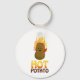 Sonnenbraune Kartoffel mit einem glücklichen Gesicht und Flammen aus seiner oberen Hälfte. Unten ist das Wort Hot Potato.