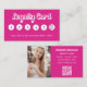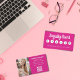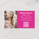Ein femininer, heiß rosa Hintergrund, weißer Text vorne: Ermäßigung hinzufügen. Zurück: Personalisieren Sie Ihr Foto, Ihren Namen, Ihren Titel, Ihre Telefonnummer, Ihre E-Mail, Ihre Website-Adresse, Ihren qr-Code auf Ihrer Website.