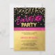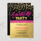 Jeter une soirée de bachelorette ? Besoin d'idées ? Obtenez ces modèles personnalisés modernes et tendance pour vous do-it-yourself facilement. Rose chaud avec faux confetti or avec noir et faux feuille d'or arrière - plan et parties scintillant. Abordable mais pas bon marché. Personnalisez ces invitations pour votre prochaine fête. Le dos de la carte a aussi du texte pour que vous puissiez ajouter plus de texte dans les instructions spéciales coques comme une bachelorette de week-end!