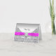 Elégant arc en satin rose vif avec centre de bijoux en diamant avec carte de remerciements en dentelle en diamant argenté.