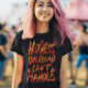 Ein feuriges und fett gezeichnet Design mit den Worten Hotness Overload Cant Handle in rot und gelb. Die Buchstaben sind von Flammen umgeben, was dem Design ein heißes und intensives Ambiente verleiht.