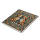 A square decorative tile featuring two dogs in a floral setting, reminiscent of Art Nouveau style. The dogs, positioned side by side, are brown and white with floppy ears and white chests. They have a regal, alert posture. The background is a dense arrangement of stylized leaves and flowers in muted greens, yellows, and pinks, creating a rich, textured backdrop.