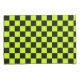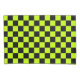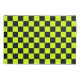 A vibrant checkerboard pattern with alternating neon yellow and black squares creates a striking geometric design, conveying a bold and energetic tone.