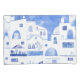 Une aquarelle bleue et blanche du village d'Oia sur l'île grecque de Santorin.