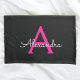 Housse D'oreillers Chaud rose noir Script Girl Nom du monogramme