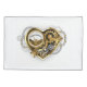 Coeur steampunk mécanique, volumétrique, avec manomètre, acier et or sur arrière - plan blanc. Style Steampunk.
