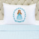 Une jolie princesse aux cheveux bruns en robe étincelante bleue décore cette taie d'oreiller. Personnalisez-le avec votre nom. Fait un joli cadeau d'anniversaire. Conçu pour vous par Blackberry Boulevard.