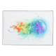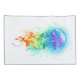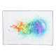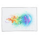 Grande méduse irisée, artistiquement dessinée, brillante, avec de longues tentacules sur le blanc, peinte sur l'arrière - plan multicolore. Méduse arc-en-ciel.