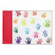 Couleurs vives et amusantes de petites empreintes. Bordure rouge côté ouverture avec des lettres blanches de votre personne spéciale.