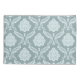 A vintage style decorative damask surface pattern influenced by rococo classical design in duck egg blue color detail on a teal background.