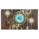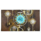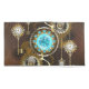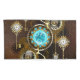 Turquoise lenses with antique watch with brass gears and golden keys on rusty, brown background. Steampunk style.