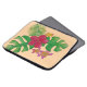 Un crayon d'aquarelle d'une fleur rose tropicale aux feuilles verts.