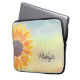 Cette pochette d'ordinateur portable à fleurs est décorée d'un tournesol jaune aquarelle. Il est facilement personnalisable avec votre nom et votre initiale. Aquarelle originale © Michele Davies.