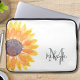 Cette pochette d'ordinateur portable monogrammée à fleurs est décorée d'un tournesol jaune aquarelle. Il est facilement personnalisable avec votre nom et votre initiale. Aquarelle originale © Michele Davies.