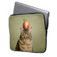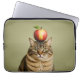 Chatte drôle avec une pomme équilibrant sur le dessus de sa tête.