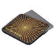 Une image fractale noire et jaune rayée, ressemblant à une étoile. Ajoutez votre propre texte.