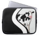 Vache laitière drôle dans des coups d'oeil noirs et blancs par derrière une frontière de remous. Douille mignonne d'animaux pour votre ordinateur portable de l'électronique d'uPhone d'iPhone.