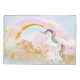 Housse de coussin licorne avec une jolie licorne pastel sur un beau fond de nuage arc-en-ciel et or. Cette housse de coussin licorne mignonne est facilement personnalisable avec le texte de votre choix.