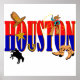 Houston, rot und blau mit Lebenssymbolen im Westen, Cowboystiefel, 10 Gallonenhüte und Cowboys. Großes Geschenk für Leute, die Liebe Houston, Texas.