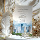 Laden Sie Ihre Lieben ein, um Ihre Hochzeit mit dieser atemberaubenden Einladung zu feiern, die die ikonische Skyline von Houston, Texas zeigt. Das Design zeigt eine wunderschöne Aquarellillustrierung des dynamischen Stadtbildes von Houston, das seine architektonische Pracht und die üppige Vegetation einnimmt. Der Text ist elegant in einer Kombination aus klassischer Serif und zarten Script-Schriftart dargestellt, wobei Farben wie gedämpftes Gold, Olivgrün und warme Terrakotta verwendet werden. Diese Einladung ist ideal für Paare, die eine zeitgenössische Hochzeit in der Stadt planen und verkörpert den lebendigen Geist von Houston mit einer Touch künstlerischer Eleganz.