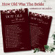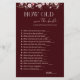 Make the bridal shower extra special with this elegant How Old Was the Bride game, designed in a romantic burgundy floral Bride in Bloom theme. Guests guess the bride’s age during meaningful milestones, from childhood memories to her wedding day. Perfect for bridal showers, bachelorette parties, and engagement celebrations. Printed on premium cardstock with a clean blank back for easy writing. All text is fully editable to personalize for any bride and event.“Matching answer key included for the host”