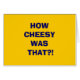 Carte de voeux - lettrage de jaune/bleu royal - message - COMBIEN DE FROMAGE ÉTAIT CE ? !