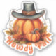 Herzlich willkommen in der Herbstsaison mit diesem lustigen "Howdy Fall" Aufkleber! Dieses Design mit einem Kürbis und einem Cowboy, der von Herbstblättern umgeben ist, verbindet den Charme eines Westerns mit gemütlichen Herbstbänken. Ideal für Herbst-Liebhaber, Landlebende und Kürbisgewürzfans.
