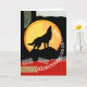 Ahwooo Happy Howl-o-ween mit heulendem Wolf, Vollmond und Kunstsammlungen sehen mit zerrissenen Papieren und Klebeband aus. Glückliche Halloween-Grußkarte. Art, Bild und Vers Copyright © Shoaff Ballanger Studios, 2022.