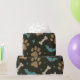 Ein spielerisches Halloween-Motiv mit braunen Pfotendrucken, aquamarinen Fledermäusen und verstreuten Knochen vor dunklem Hintergrund. Dieses Design mit kleinen Sternexplosionen vereint sprichwörtliche und niedliche Elemente - perfekt für Liebhaber von Haustieren, die die Saison mit einer Touch von Launen feiern möchten. Ideal zum Verpacken von Papier, Stoff oder festlichem Zubehör.
