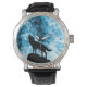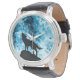 Howling Wolf Winter schneeblauer Rauch Abstrakt Armbanduhr