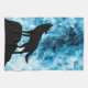 Abstrakter geometrischer Winter schneeblau-weißer Rauch mit schwarzer Wolfskulptur-Silhouette.