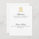 HR-Monogramm- oder RH-Monogramm-Informationskarte, die mit Einladungen in Gold im Monogramm übereinstimmt.