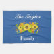 Dieses hübsche Küchentuch ist mit einem blauen Hintergrund, dem Familiennamen in kursiver Schrift und einer Sonnenblume im Zentrum versehen. Unter ist "Familie". Macht ein großartiges Geschenk für einen geliebten. Bestelle noch heute! Sonnenblumendesign erstellt von: AMBillustrations http://www.etsy.com/shop/AMBillustrations
