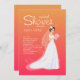 Diese schöne Brautduscheinladung ist in einem Fußbodenkleid mit einem Zug und Schleier enthalten und hält einen Strauß von Blume gegen einen heißen rosa bis pfirsichfarbenen Hintergrund. (Vecteezy.com - Hochzeit durch Freevoctor). Die Karte lässt sich leicht mit Ihren Formulierungen, Schriftart, Schriftart, Papierform und sechs Papiertypen anpassen. Nicht genau das, was Sie suchen? Alle unsere Produkte können auf Ihre Bedürfnisse zugeschnitten werden, ohne Aufpreis. Kontaktieren Sie uns einfach unter heartfelthelper@gmail.com Coordinating Produkte erhältlich: frag uns einfach!