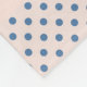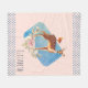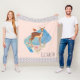 Eine personalisierte Decke mit einer schönen braunen Dose mit weißen Flecken auf ihrem Fell. Ein niedlicher Vogel sitzt auf dem Rücken des Hirsches. Eine elegante Blume bestehend aus Aquarellfarben-Rose und hellgrünen Blätter unter ihren Füßen. Ein blauer Polka-Punkt-Rand mit pfirsichfarbenem Hintergrund. Schmuckhaftes Design.