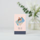 Visitenkarten mit hübschem braunem Hirsch mit weißem gepunktetem Rücken. Ein kleiner Vogel sitzt auf dem Rücken des Hirsches. Ein extravagantes Blumenstrauß mit Aquarellfarben-Rose und hellolivgrüne Blätter unter den Füßen des Hirsches. Ein blaues Aquarelleck hinter dem Bild. Innozentes und süßes Design mit rustikaler Eleganz. Pfirsichfarbener Hintergrund