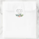 Eleganter Aquarellbouquet aus Blume und Blattwerk in Rosa, Weiß und Grün, personalisierte Gastgeschenk Hochzeit Aufkleber. Entworfen, um unsere zeitlose Blumenhochzeit Kollektion zu ergänzen. Anpassen von Stil, Farbe und Schriftart des Textes.