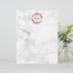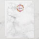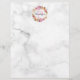 Letterhead mit Blumenkranz aus rosa und orangefarbenen Blume und Zweigen, Zwiebeln und Blätter. Dieses digitale Bild wurde ursprünglich mit Aquarellen erstellt und ist niedlich und trendig. Der Hintergrund ist ein Bild aus elegantem weißem Marmor. Personalisieren Sie das Programm mit einem Monogramm Initial und Name.